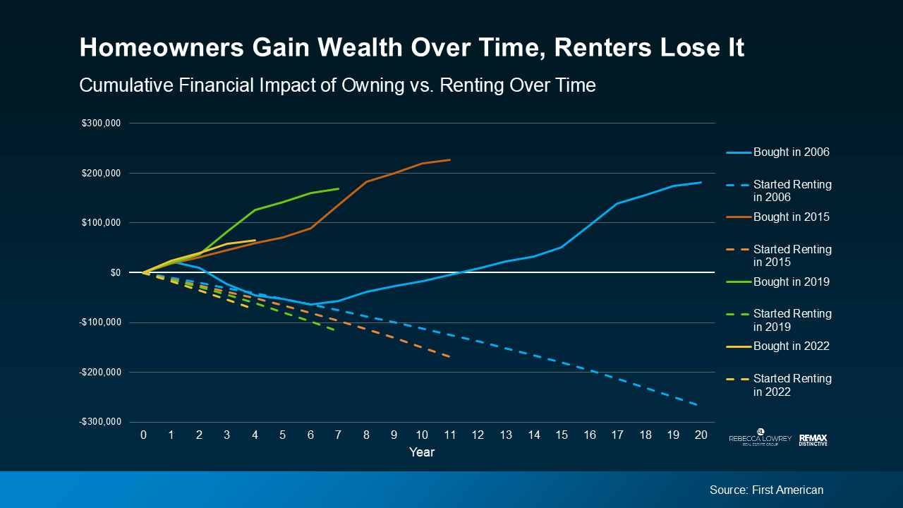 Bottom line: Time in a home builds wealth. Time renting does not.